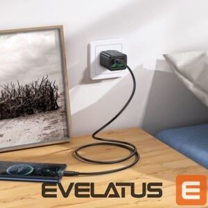 The charger is equipped with quadruple output: 2 USB-C (20W) and 2 USB-A (20W), allowing you to charge 4 devices simultaneously.