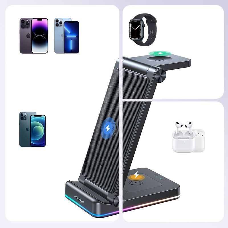 Joyroom 3in1 induction charger for Apple devices – iPhone, Apple Watch, Airpods (up to 15W) stand stand black (JR-WQN01)