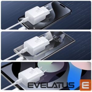 Charging speed and safety – the Joyroom JR-TCF20 network charger is second to none. It not only meets the latest iPhone power requirements, but also offers universal compatibility with many devices: from phones to tablets. Thanks to support for Power Delivery and Quick Charge 3.0 protocols, you can enjoy extremely fast charging, up to four times faster than standard chargers. Moreover, six-point protection ensures complete safety of your devices. The set includes a 1 m USB-C / Lightning cable.