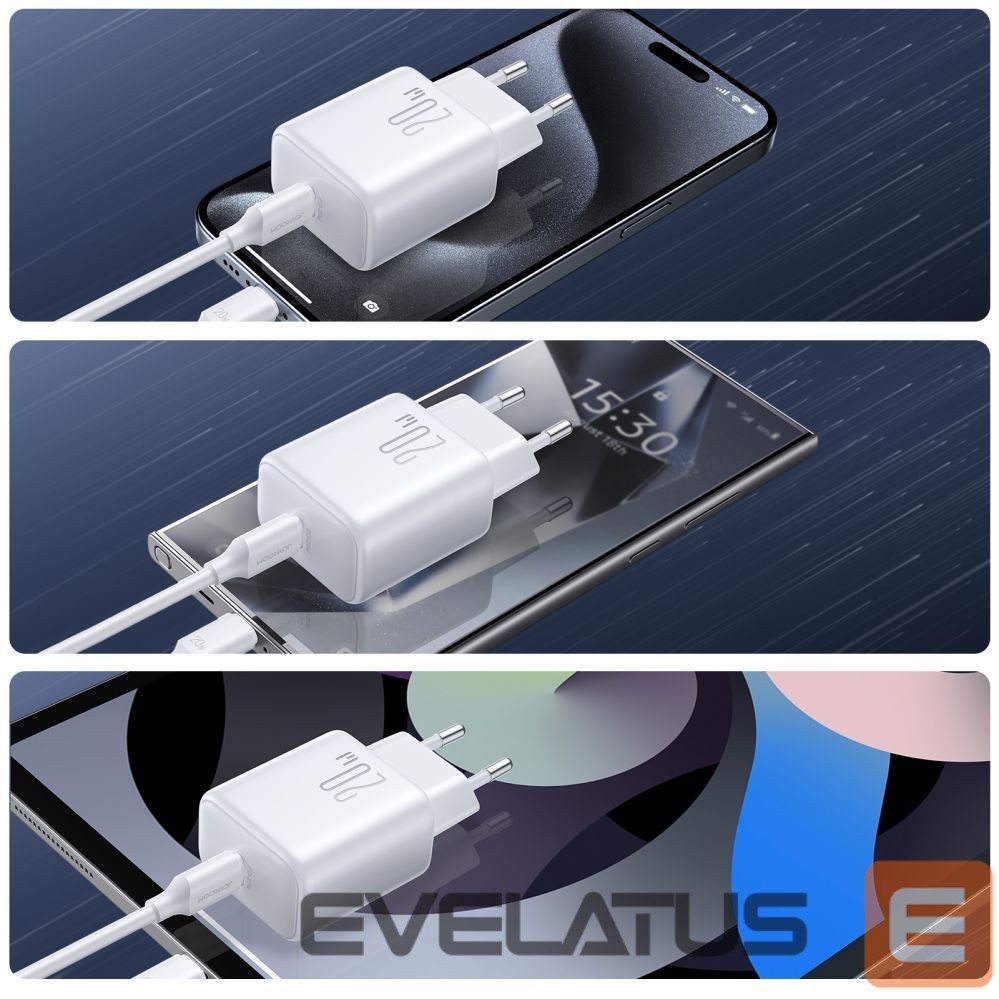 Adapteris Joyroom Joyroom JR-TCF20 USB-C PD 20W network charger – white + USB-C / Lightning cable 1m