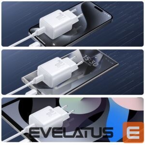 Speed and security charging – Joyroom JR-TCF20 mains charger is second to none. Not only does it meet the latest iPhone power requirements, but it also offers universal compatibility with multiple devices: from phones to tablets. Thanks to support for Power Delivery and Quick Charge 3.0 protocols, you can enjoy extremely fast charging, up to four times faster than standard chargers. Moreover, six-point protection ensures complete safety of your devices. The set includes a 1 m USB-C / USB-C cable.