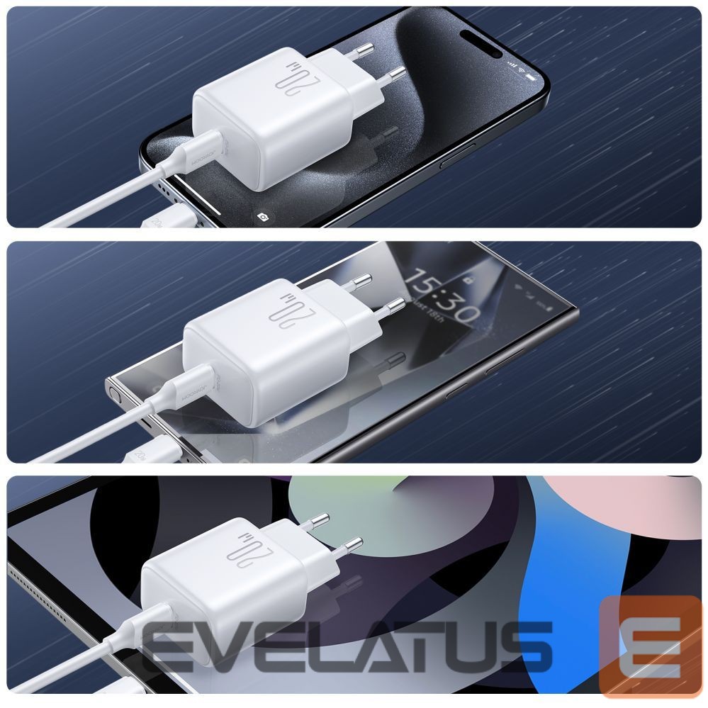 Adapteris Joyroom Joyroom JR-TCF20 USB-C PD 20W network charger – white + USB-C / USB-C cable 1m