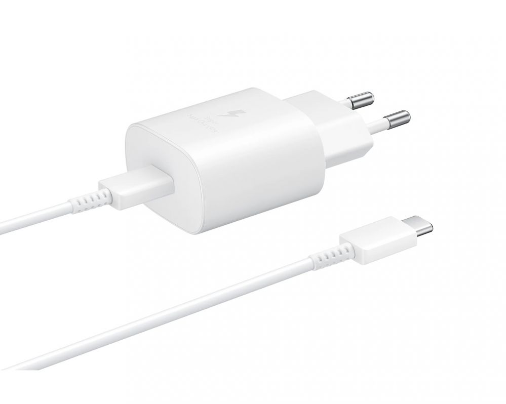Samsung travel network charger with USB-C output, maximum power 25W and USB-C data cable.