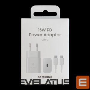 Adapteris Samsung Samsung EP-T1510XWEGEU USB-C 15W PD AFC wall charger + USB-C cable – white