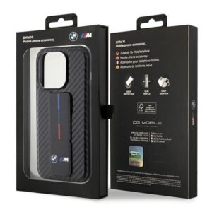 Aizmugurējais vāciņš BMW BMW Grip Stand Smooth & Carbon case for iPhone 15 Pro – black