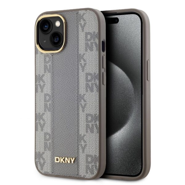 Aizmugurējais vāciņš DKNY Apple DKNY PU Leather Checkered Pattern Magsafe Case for iPhone 15 Beige