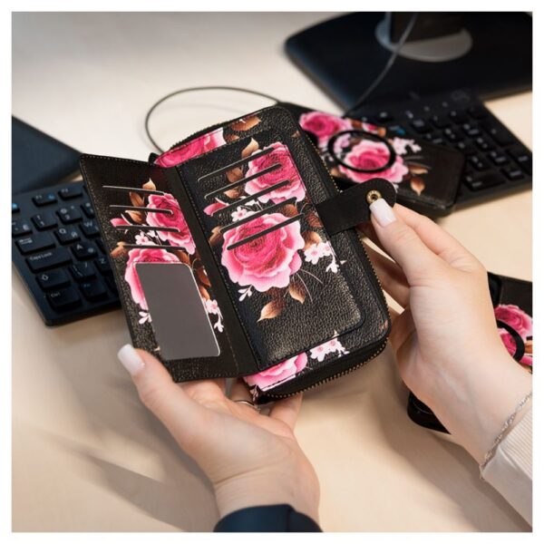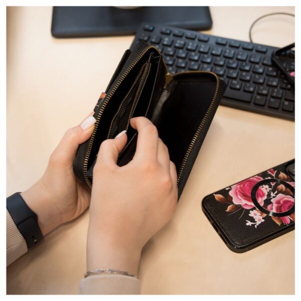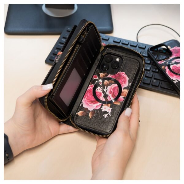 Aizmugurējais vāciņš Evelatus Apple iPhone 15 Pro Leather Case Zipper Design Flower Black