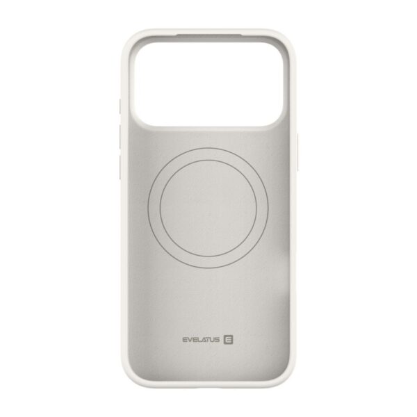 Evelatus Premium MagSafe maciņš ir izgatavots no augstas kvalitātes silikona, kas iegūts no šķidrā silikona (Liquid silicone). Šis process nodrošina izturīgu, elastīgu un patīkamu taustei materiālu ar soft touch pārklājumu. Maciņa iekšpuse ir pārklāta ar smalku mikrošķiedras audumu, kas papildus aizsargā jūsu tālruņa korpusu no skrāpējumiem. Iebūvētais magnēts ir nemanāmi integrēts maciņa dizainā, nodrošinot ātru un ērtu MagSafe aksesuāru piestiprināšanu. Ergonomiskais dizains nodrošina ērtu un drošu tālruņa lietošanu, bet soft touch pārklājums piešķir papildu komfortu.