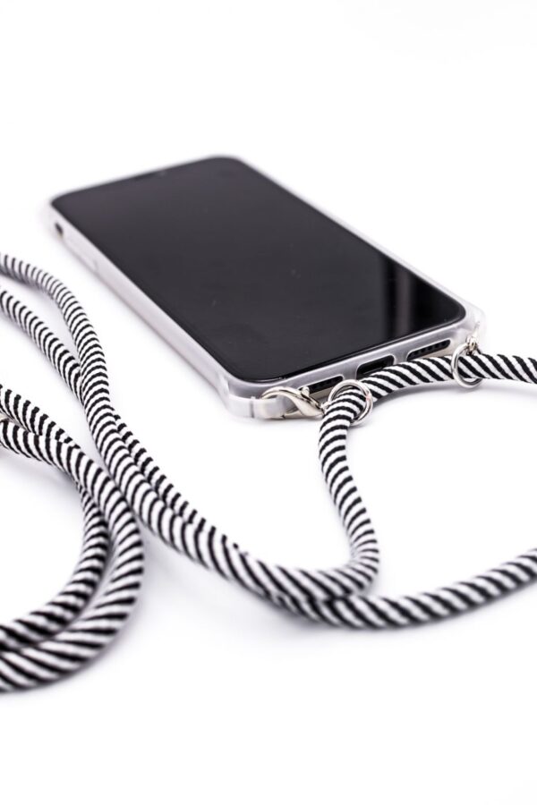 - Brīvas rokas: Integrētā aukliņa ļauj nēsāt telefonu kā kaklarotu vai pār plecu, lai rokas būtu brīvas, bet telefons — vienmēr gatavs lietošanai.