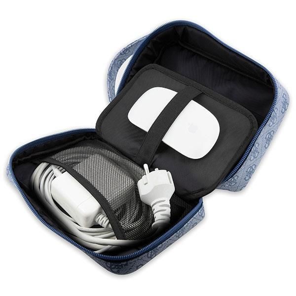 The interior of the bag is extremely functional – numerous compartments allow you to conveniently store the necessary small accessories. The bag has an external port terminated with a USB connector, and the inside of the bag hides a cable terminated with a USB connector.