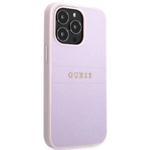Aizmugurējais vāciņš Guess Guess GUHCP13LPSASBPU iPhone 13 Pro / 13 6.1" purple/purple Saffiano Hot Stamp & Metal Logo