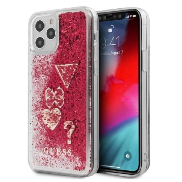 Aizmugurējais vāciņš Guess – iPhone 12 mini 5.4” Liquid Glitter Charms Cover Rapsberry