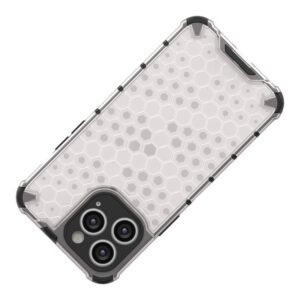 Honeycomb series case it is made of a thermoplastic and durable material that is arranged in the shape of a honeycomb. The cover is adapted to the iPhone 14 Pro , perfectly protects the phone against damage due to falls or scratches (for example, by keys carried in a pocket). Raised edges around the screen and rear camera protect the phone from scratching these elements when it is placed on a flat surface. It has responsive buttons and cutouts for ports. Perfect for people who value style, quality and want to take care of their device.