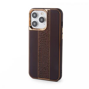 Šis vāciņš ir rūpīgi izstrādāts, apvienojot divu veidu augstas kvalitātes PU ādu – gludu un ar izteiksmīgu krokodila ādas tekstūru. Šī kombinācija ne tikai izskatās grezni, bet arī nodrošina patīkamu un drošu satvērienu. Elegantie zelta akcenti un elektrogalvanizētā apdare piešķir papildu mirdzumu un premium sajūtu. Metāla pogas ir ne tikai vizuāli pievilcīgas, bet arī nodrošina izcilu taktilu pieredzi, savukārt precīzie izgriezumi ļauj ērti lietot visas ierīces funkcijas, nemazinot aizsardzību.