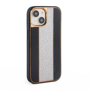 Aizmugurējais vāciņš iLike Apple iPhone 15 Diamonds and Leather Case Black
