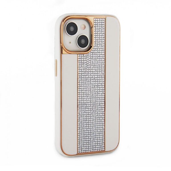 Aizmugurējais vāciņš iLike Apple iPhone 15 Diamonds and Leather Case White