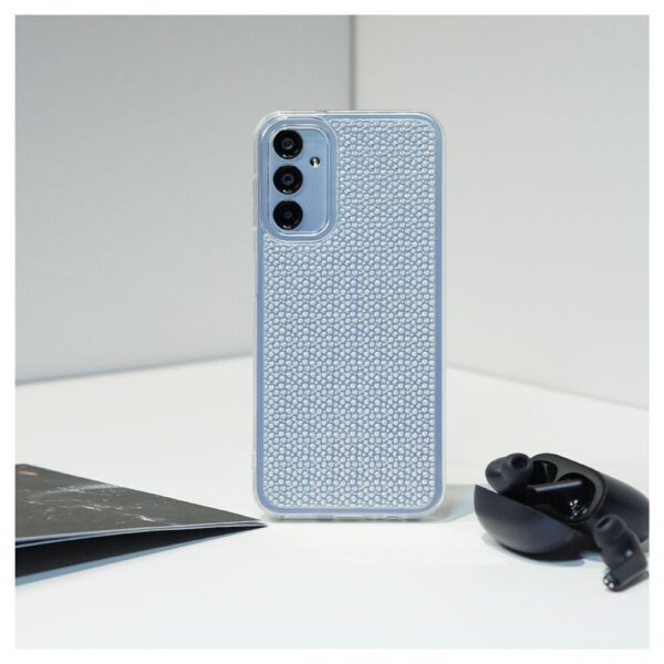 Šis maciņš ir izgatavots no izturīga, bet elastīga termoplastiskā poliuretāna (TPU), kas ir patīkams taustei un nodrošina drošu satvērienu. Tā pilnībā caurspīdīgais korpuss ļauj izcelt viedtālruņa oriģinālo estētiku, kamēr unikālā iekšējā dimanta tekstūra rada valdzinošu spīduma efektu, kas diskrēti mainās atkarībā no gaismas leņķa. Maciņa plānais profils un vieglais svars nepalielina ierīces izmērus vai svaru, saglabājot tās dabisko ergonomiku un ērtu lietošanu ikdienā.