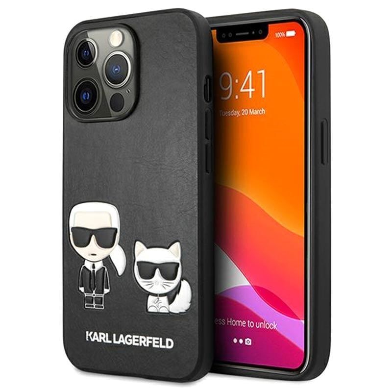 Aizmugurējais vāciņš Karl Lagerfeld iPhone 13 Pro Max Karl & Choupette PU Leather Case Black