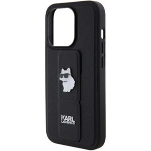 Aizmugurējais vāciņš Karl Lagerfeld Karl Lagerfeld Gripstand Saffiano Choupette Pins case for iPhone 15 Pro Max – black