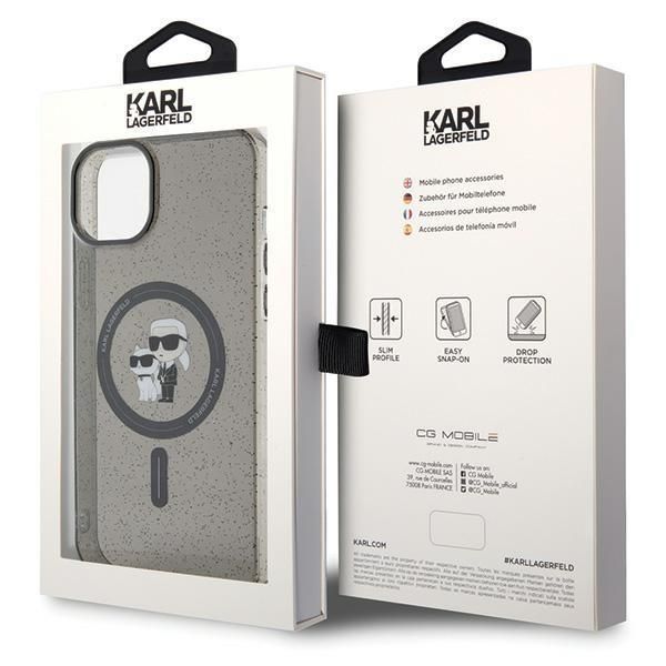 Aizmugurējais vāciņš Karl Lagerfeld Karl Lagerfeld Karl&Choupette Glitter MagSafe case for iPhone 15 Plus – black