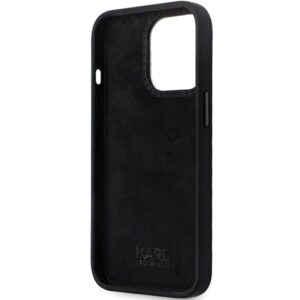 Aizmugurējais vāciņš Karl Lagerfeld Karl Lagerfeld KLHCP14XSMHKNPK case for iPhone 14 Pro Max 6.7" – black Silicone Ikonik Metal Pin
