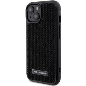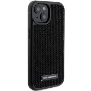 Aizmugurējais vāciņš Karl Lagerfeld Karl Lagerfeld Rhinestone Logo Metal Plate case for iPhone 15 – black