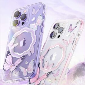Aizmugurējais vāciņš Kingxbar Kingxbar Butterfly Series magnetic case for iPhone 14 Plus MagSafe case with butterflies pink