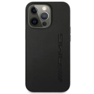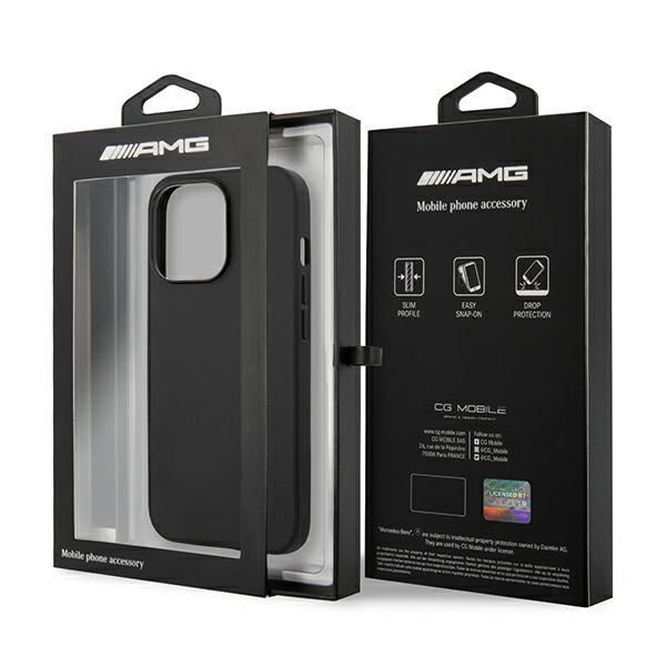 Aizmugurējais vāciņš Mercedes-Benz AMG AMHCP14XDOLBK iPhone 14 Pro Max 6.7 "black / black hardcase Leather Hot Stamped