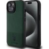 Aizmugurējais vāciņš U.S. Polo PU Apple iPhone 15 Leather Mesh Pattern Double Horse Case Green