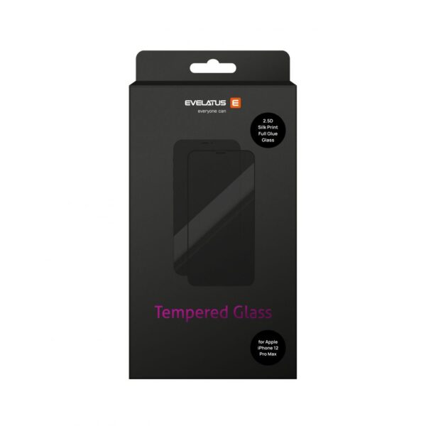 Aizsargstikls Evelatus Apple iPhone 12 Pro Max 2.5D Full Cover Japan Glue Glass Anti-Static