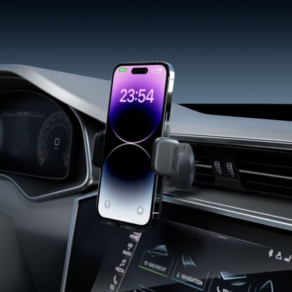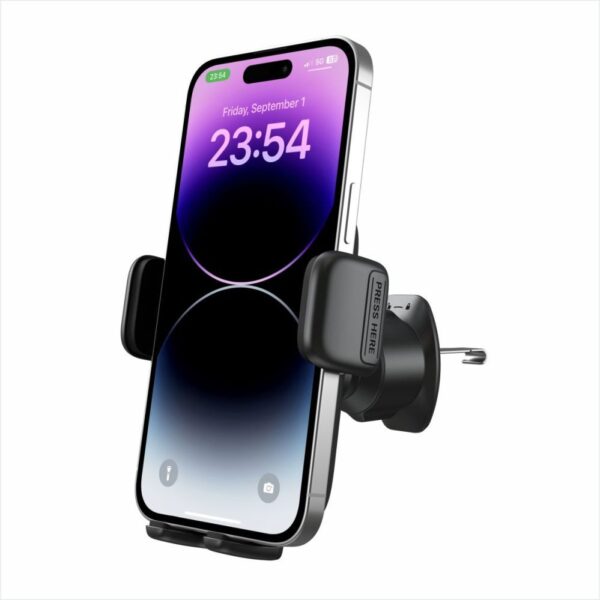 Izturīgs un universāls turētājs viedtālruņiem. Tālruņa skavas aptver 55–89 mm (2,17–3,5″), savienojums ar nozares standarta 17 mm lodveida šarnīru. Klipsis restē der vairumam ventilācijas režģu (12,5–29 mm) un iztur līdz 350 g.