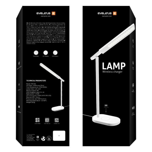 Bezvadu lādētājs Evelatus Evelatus Desk Lamp Wireless Charger EWC07 Black