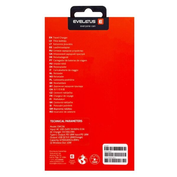 Bezvadu lādētājs Evelatus Travel adapter Wireless Charger EWC06 White