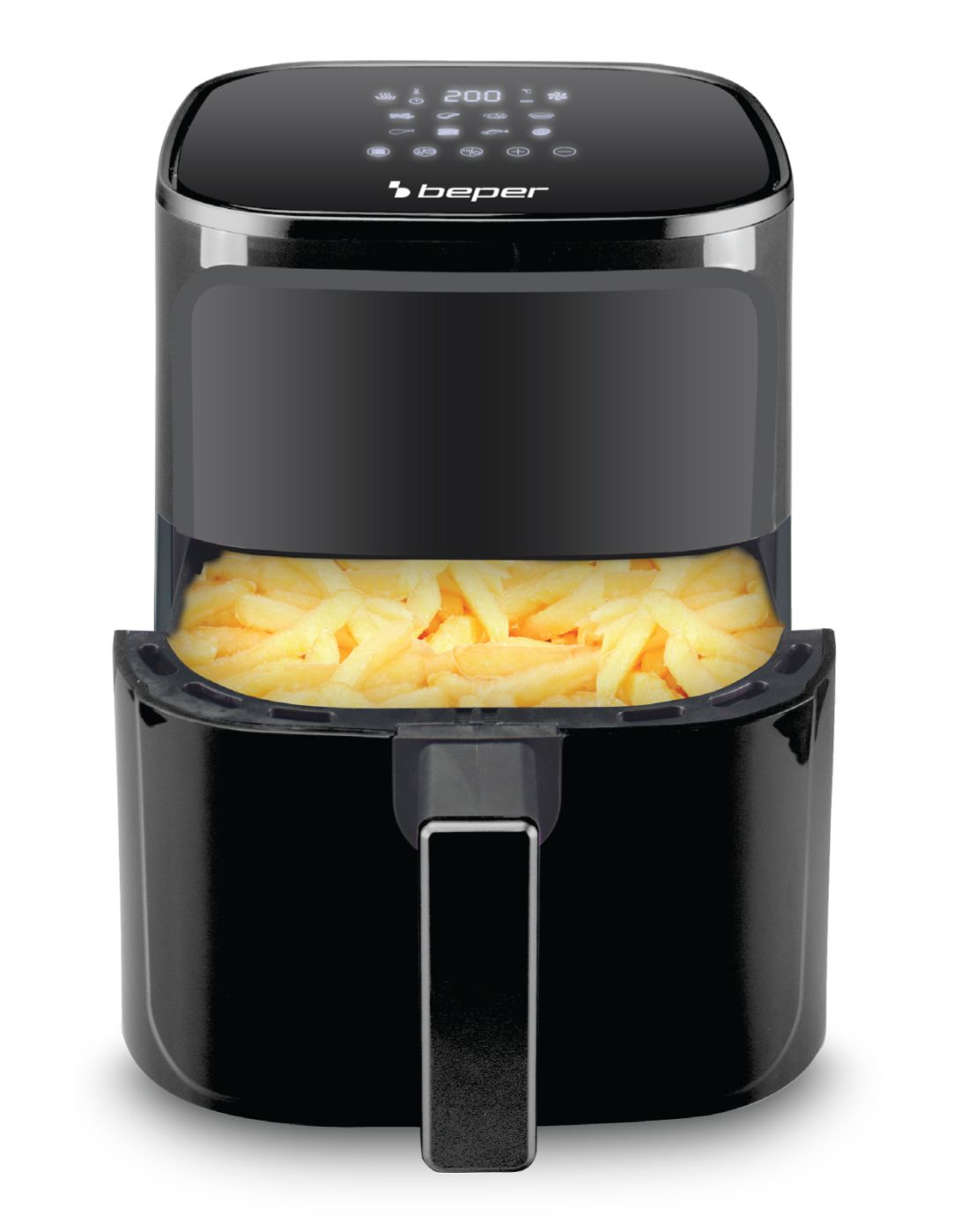 Karstā gaisa fritieris ir veselīgākā alternatīva tradicionālajai cepšanai, jo tā ļauj cept bez eļļas vai ar ļoti mazu eļļas daudzumu. Ideāli piemērots arī grauzdēšanai, cepšanai un grilēšanai. Digitālais vadības panelis ar jutīgu pieskāriena sensoru, lai izvēlētos no 8 iepriekš iestatītām programmām, pielāgotu temperatūru no 80 līdz 200°C un iestatītu taimeri līdz 60 minūtēm. 5 litru tilpuma tvertne un noņemams nepiedegošs alumīnija režģis ērtai tīrīšanai. Aizsardzība pret pārkaršanu.