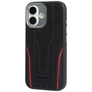 Citas preces Audi Audi R8 Genuine Leather MagSafe Case for iPhone 17 – Black and Red