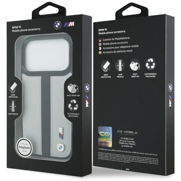Citas preces BMW BMW M Perforated Stripe Logo MagSafe Case for iPhone 17 Pro – Gray