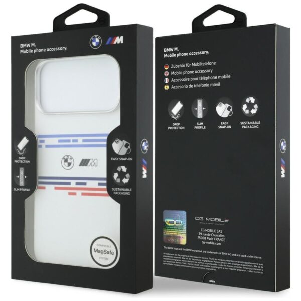 The case from the BMW M Silicon Horizontal Line MagSafe collection is made of high-quality liquid silicone , which ensures a secure grip and effectively protects the device against falls and scratches.