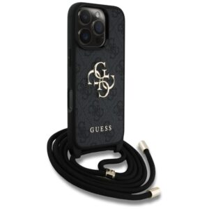 Citas preces Guess Guess 4G Big Logo Cord Stap Crossbody Case for iPhone 16 Pro Max black