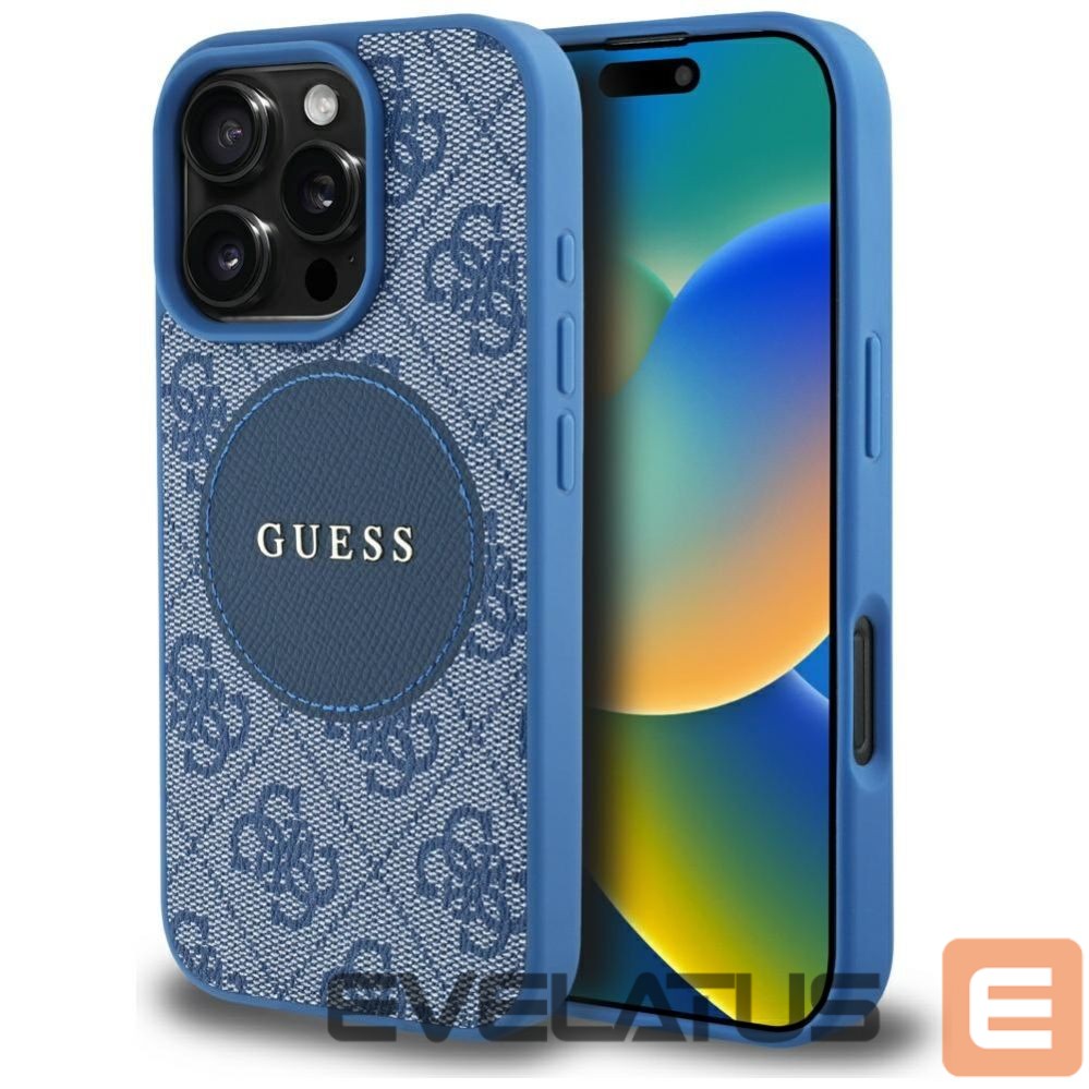 Citas preces Guess Guess 4G Circle Classic Logo MagSafe case for iPhone 16 Pro Max – blue