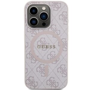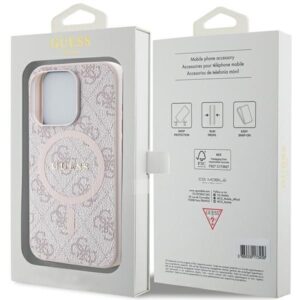 Citas preces Guess Guess 4G Collection Leather Metal Logo MagSafe Case for iPhone 15 Pro Max – Pink