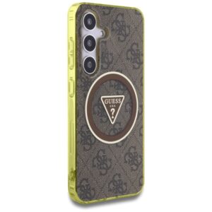 Citas preces Guess Guess 4G Glitter Triangle Buttons MagSafe Case for Samsung Galaxy S25 Brown