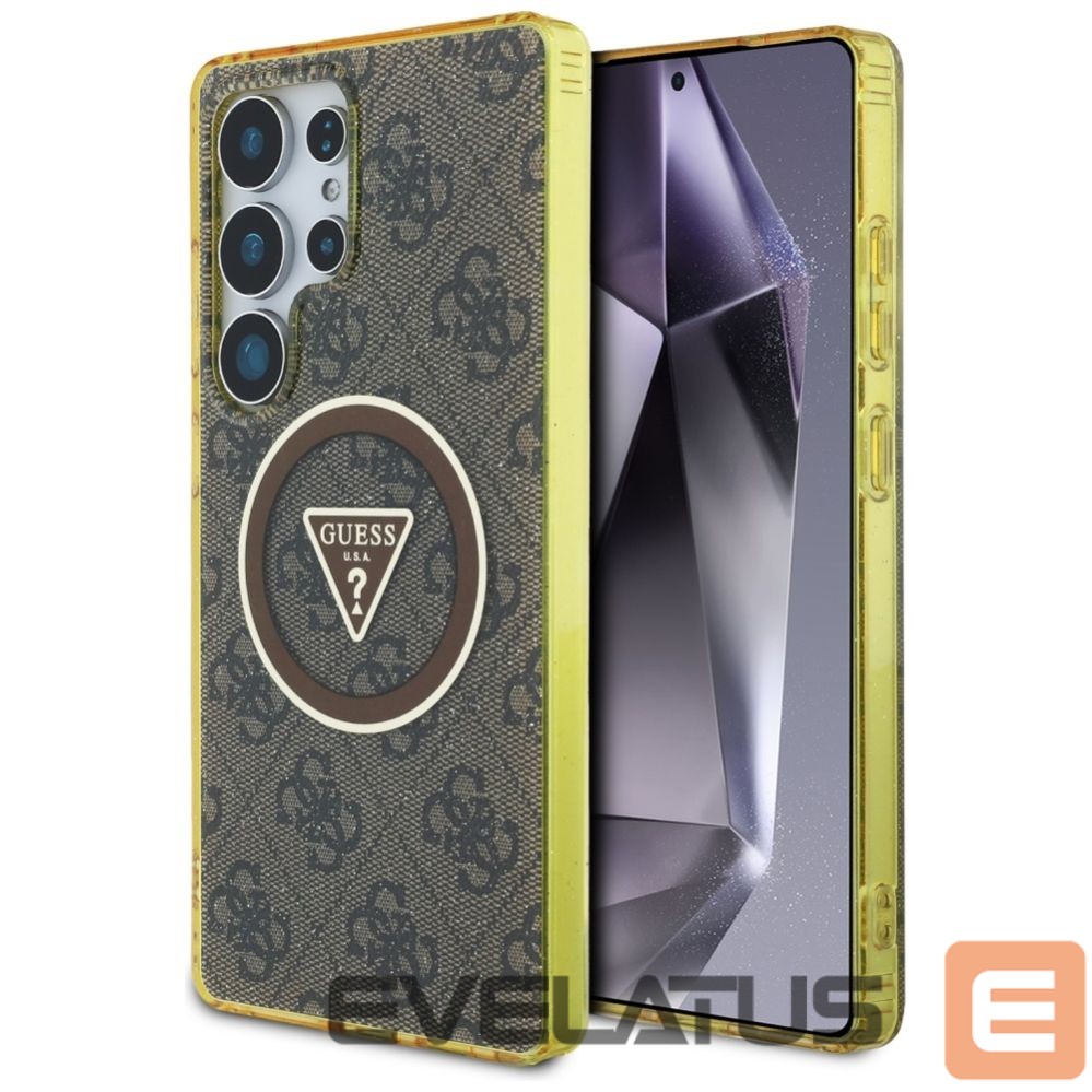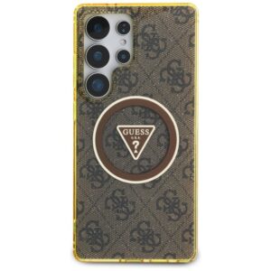 Citas preces Guess Guess 4G Glitter Triangle Buttons MagSafe Case for Samsung Galaxy S25 Ultra Brown