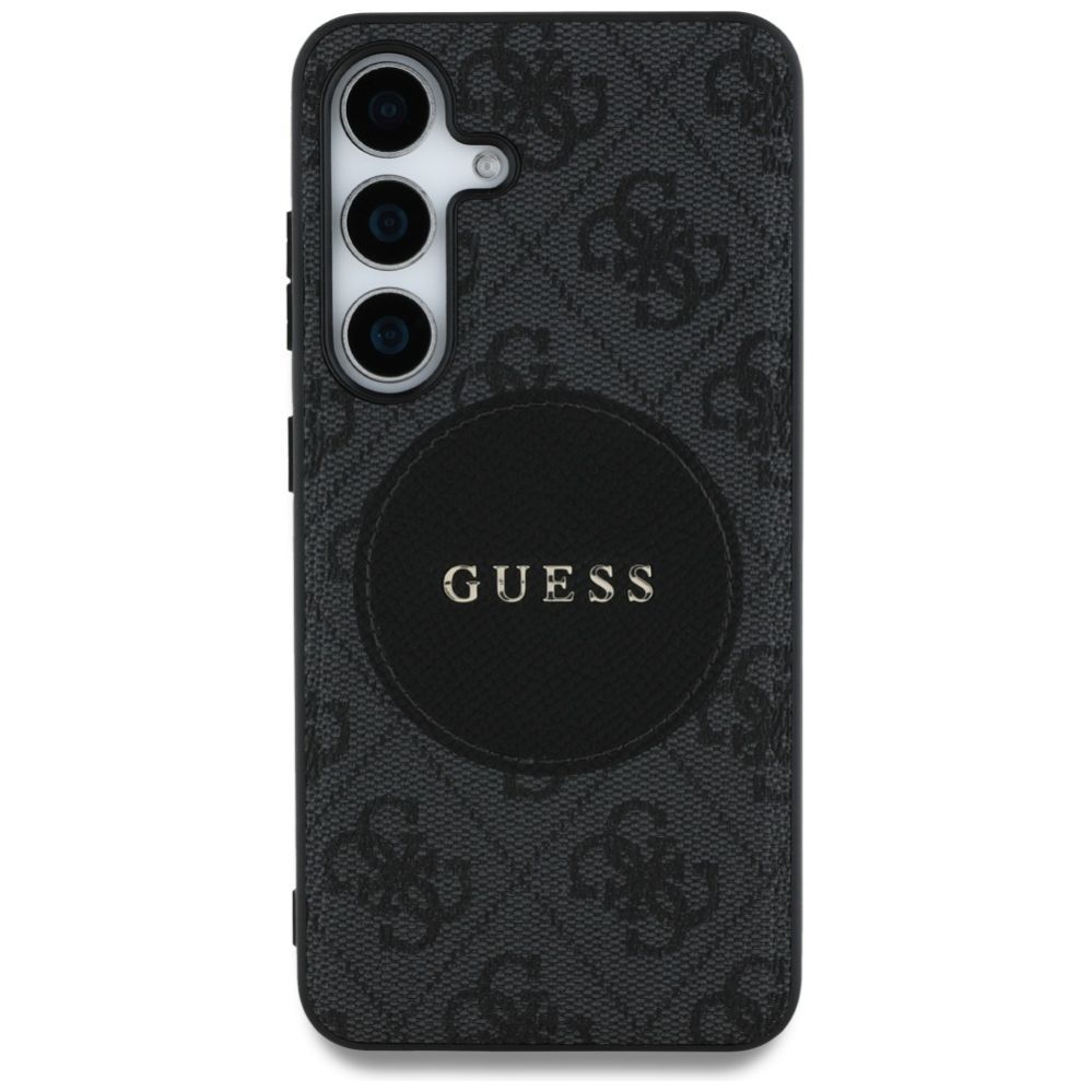 Citas preces Guess Guess 4G Round Patch Classic Logo MagSafe case for Samsung Galaxy S25 black