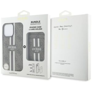 Citas preces Guess Guess 4G Stripes case with Magsafe wallet for iPhone 16 Pro Max brown