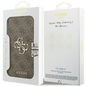 Citas preces Guess Guess Book 4G Metal Logo Case for iPhone 17 Pro Max – Brown