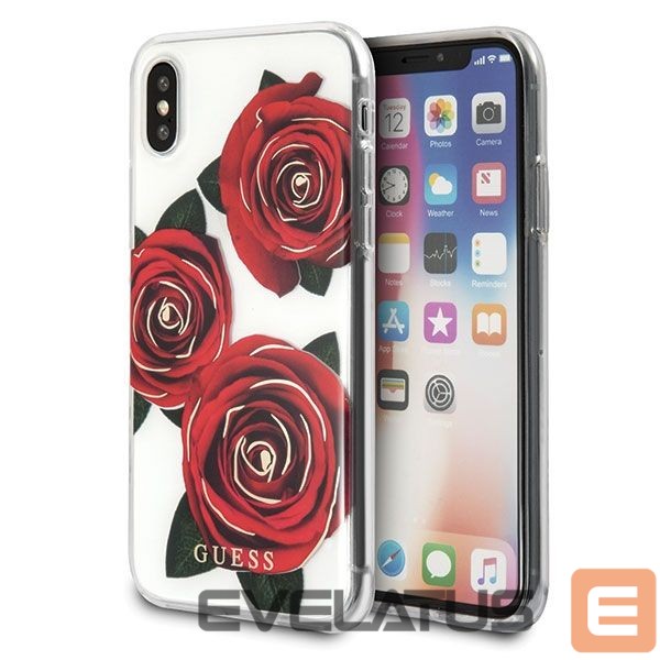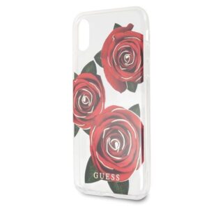 Citas preces Guess Guess Flower Desire Red Rose iPhone X Case – Transparent