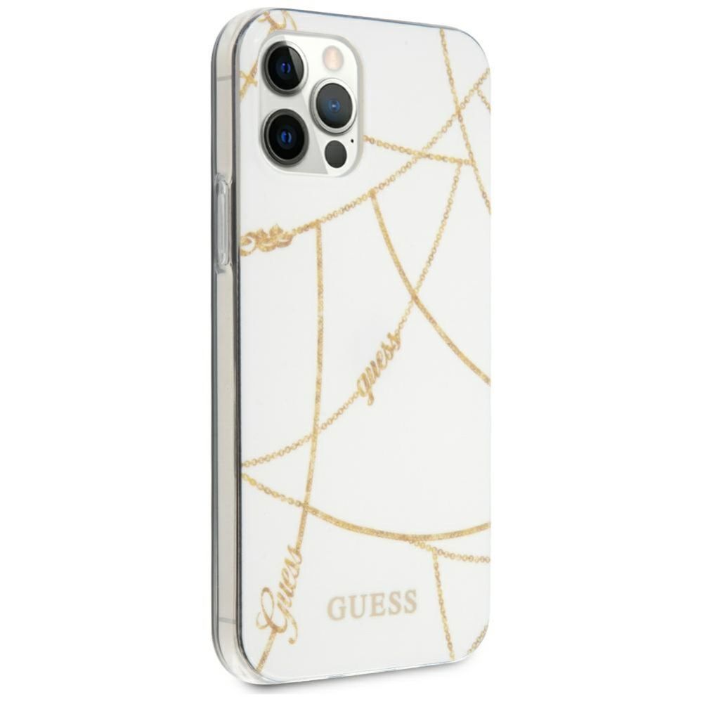 Citas preces Guess Guess Gold Chain Collection iPhone 12 Pro Max 6.7" Case – White