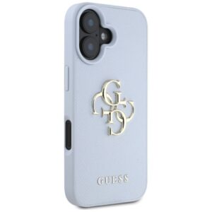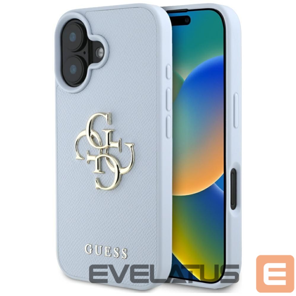 Citas preces Guess Guess Grained Big 4G Logo Small Classic Logo case for iPhone 16 – blue