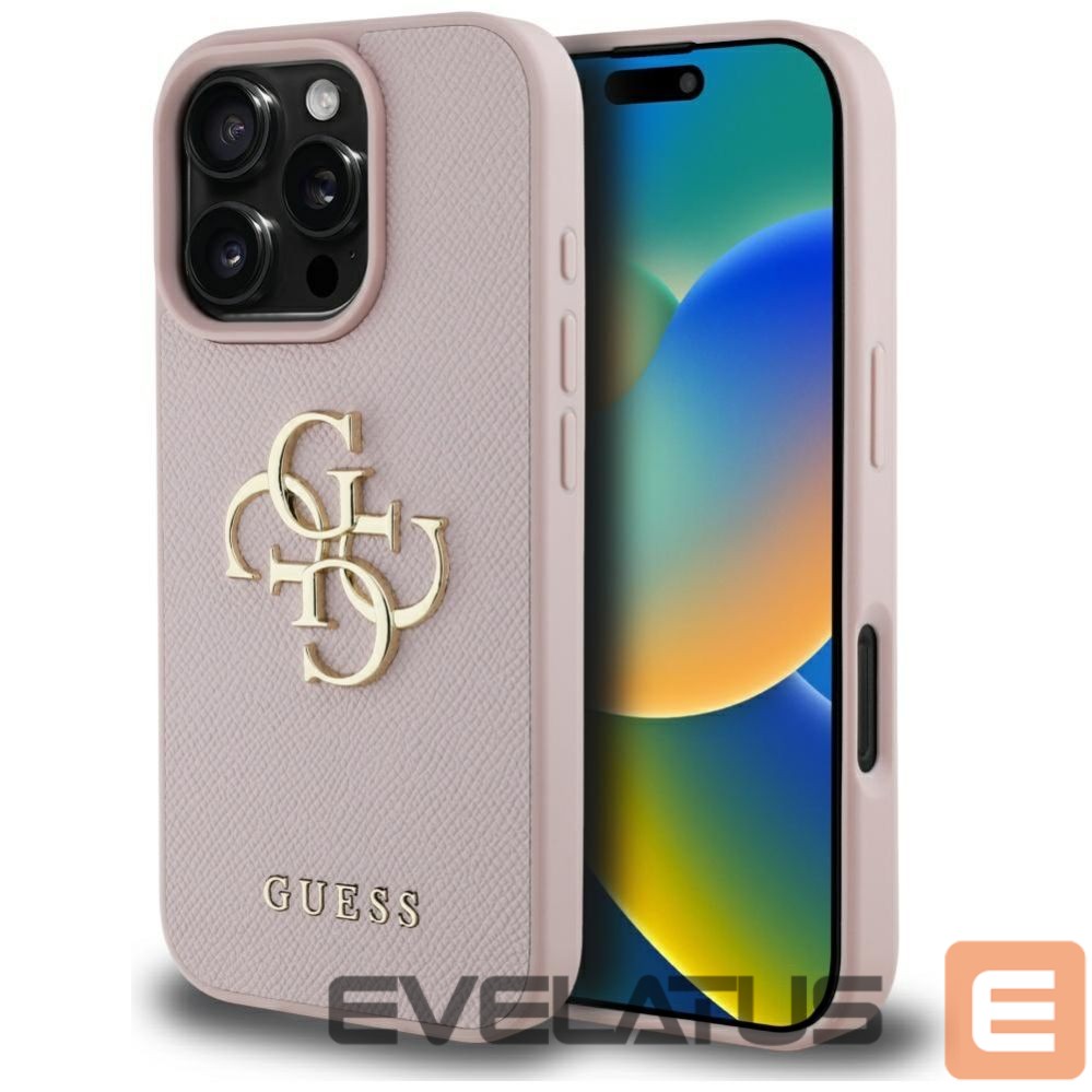 Citas preces Guess Guess Grained Big 4G Logo Small Classic Logo Case for iPhone 16 Pro Max – Pink