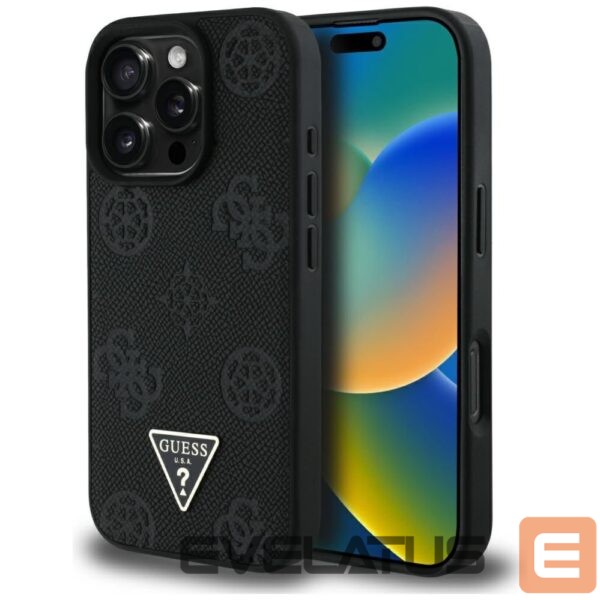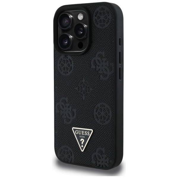 Citas preces Guess Guess Grained Hot Stamp Peony Triangle Logo MagSafe Case for iPhone 16 Pro – Black
